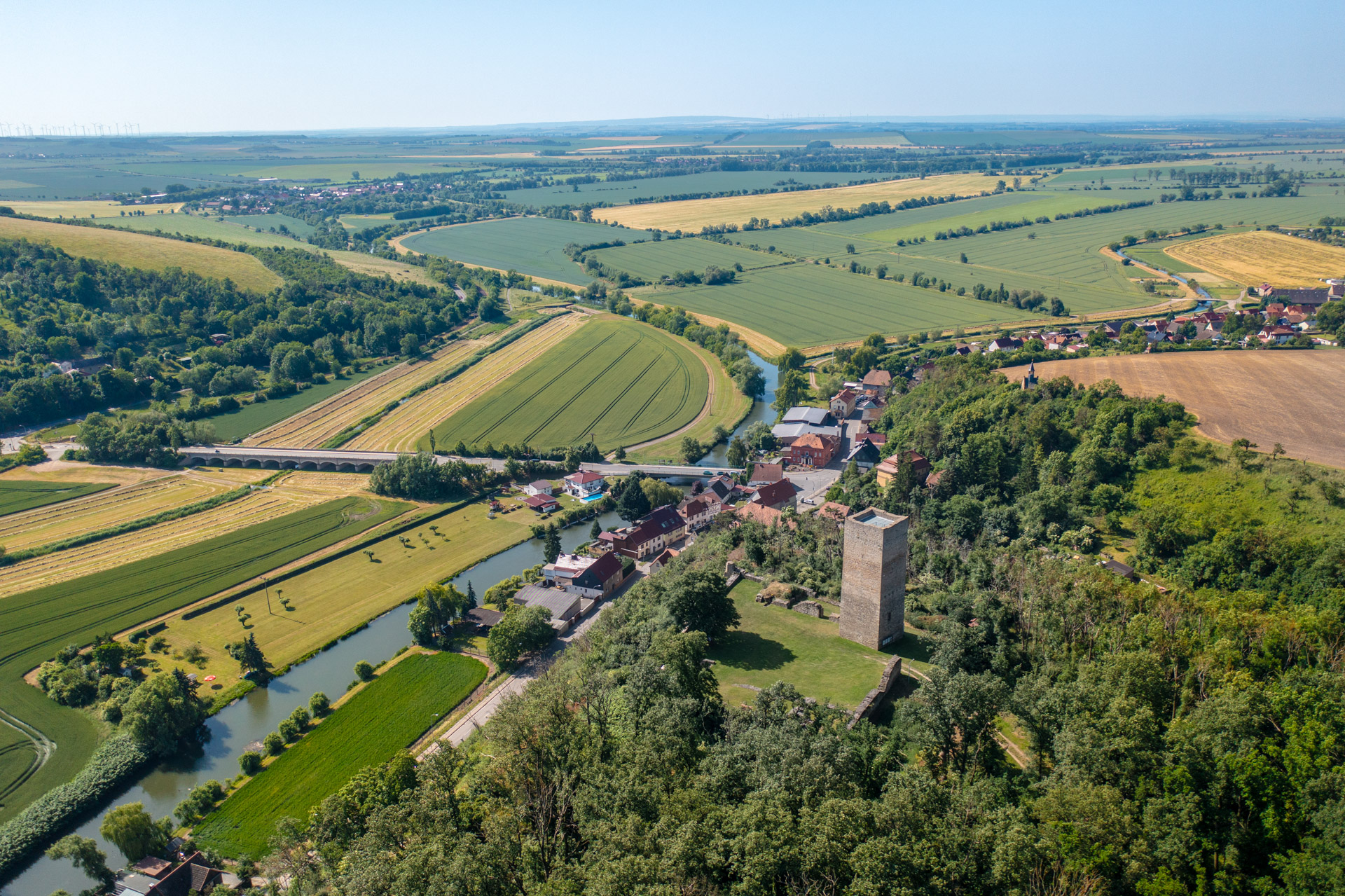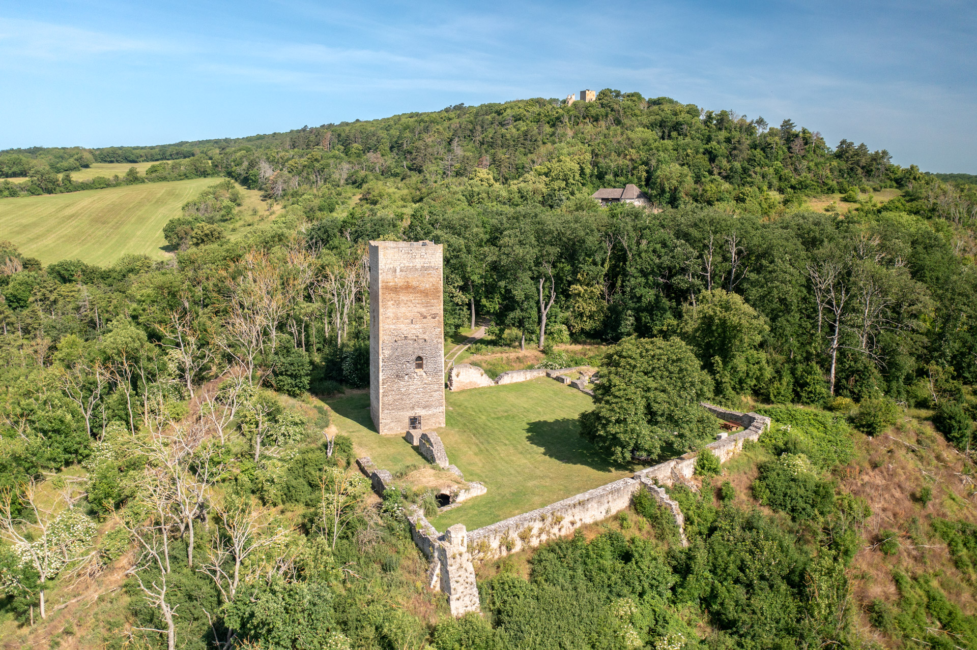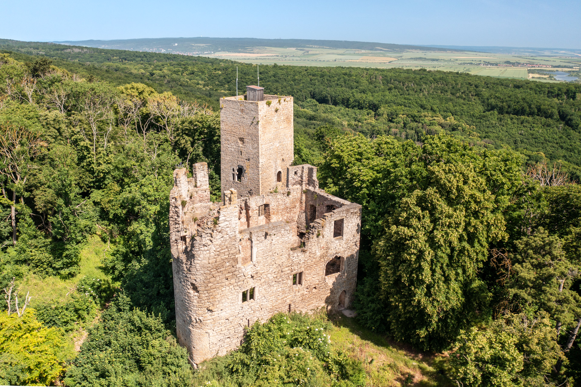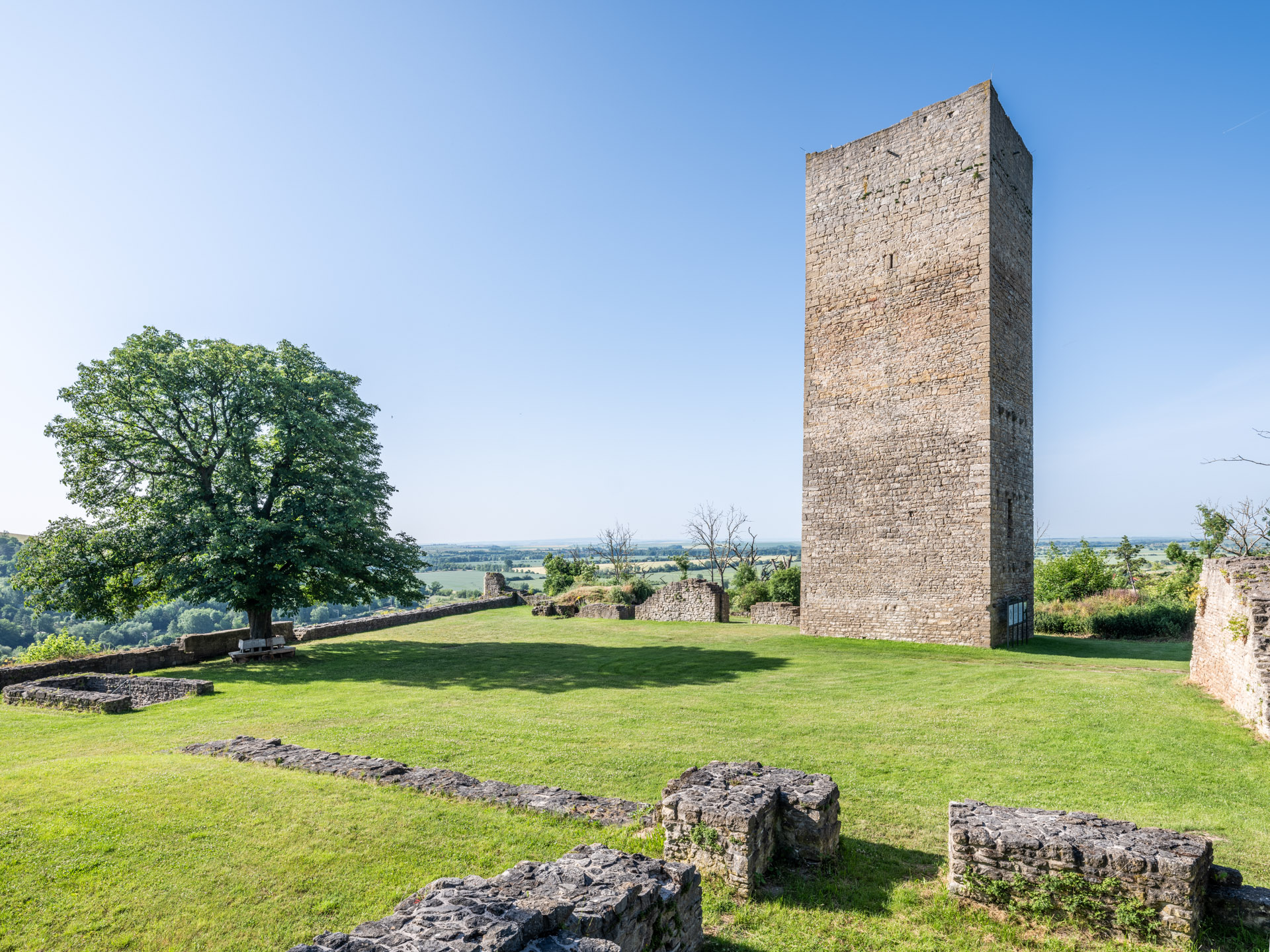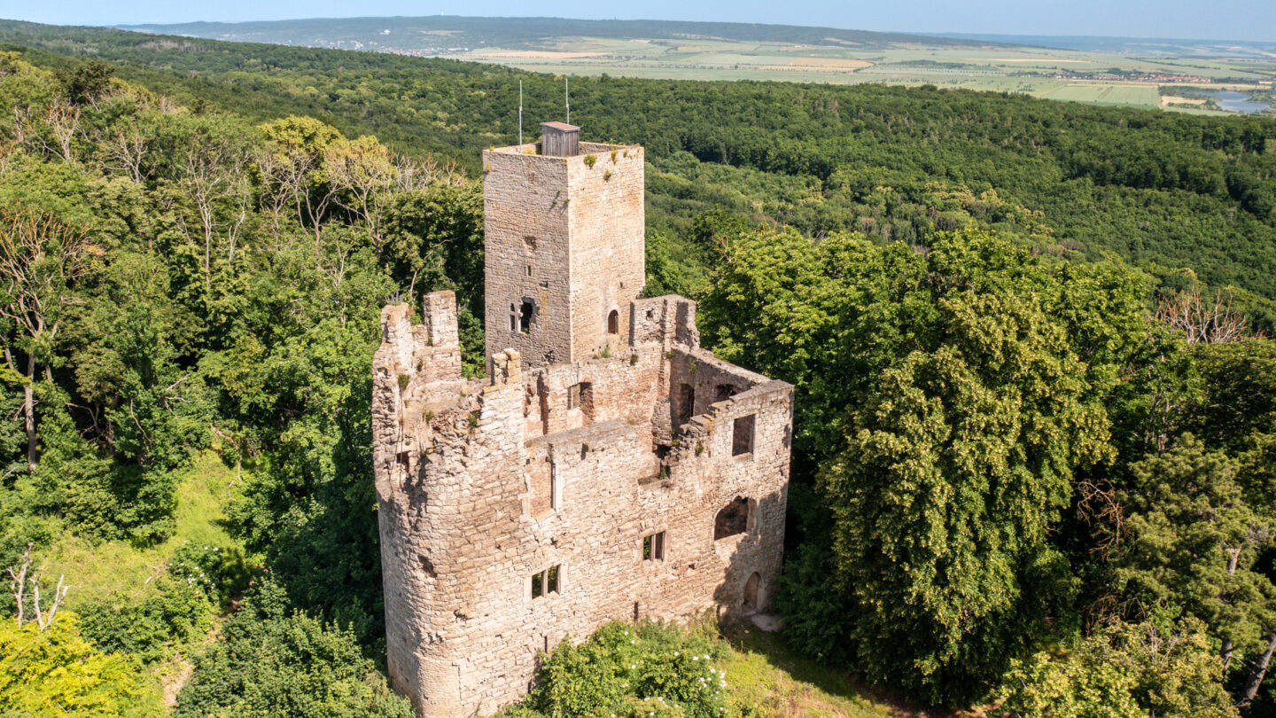 Wer schon einmal durch die Thüringer Pforte fuhr, mag sie vielleicht entdeckt haben – die Obere und die Untere Sachsenburg. Zwei Wächtern gleich erheben sich die beiden Wehranlagen auf dem sogenannten Wächterberg. Erbaut wurden sie im 13. Jahrhundert, nur 500 Meter voneinander entfernt. Beide Burgen haben eine wechselvolle Geschichte hinter sich. Markant sind vor allem die Bergfriede, die noch immer stolz aus den Baumkronen hervorragen.