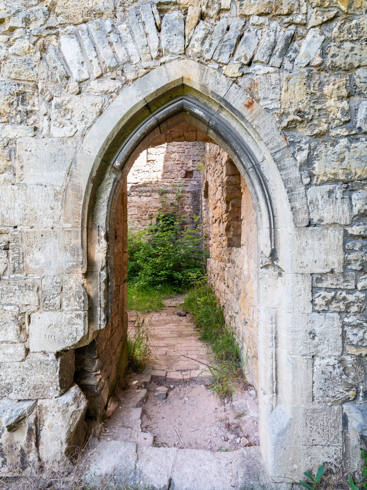 Das Innere der Burg führt den Besucher zurück in die Blütezeit der Anlage, Ende des 12. Jh. / Anfang des 13. Jh. Das weitgehend erhaltene Erscheinungsbild der mittelalterlichen Burg, mit seiner qualitätvoll gearbeiteten, romanischen Bauornamentik, zeugt noch heute von höchster handwerklicher Qualität. Kernstück des Rundgangs bildet dabei eine bauzeitliche Astsäule mit Weinrankenkapitell von hoher Güte.