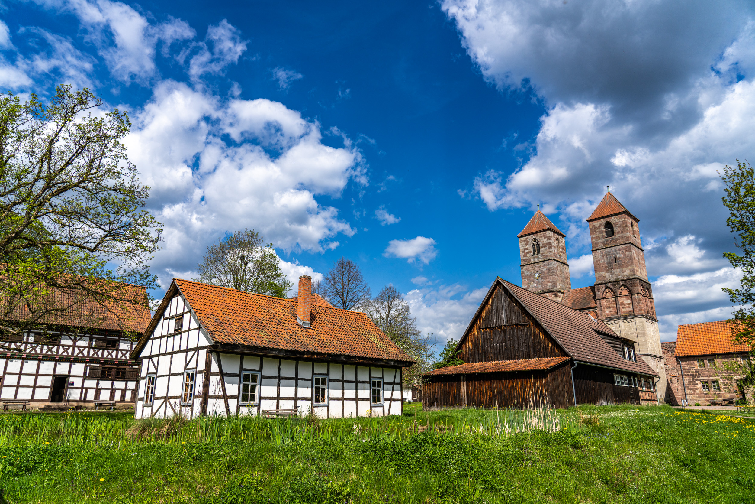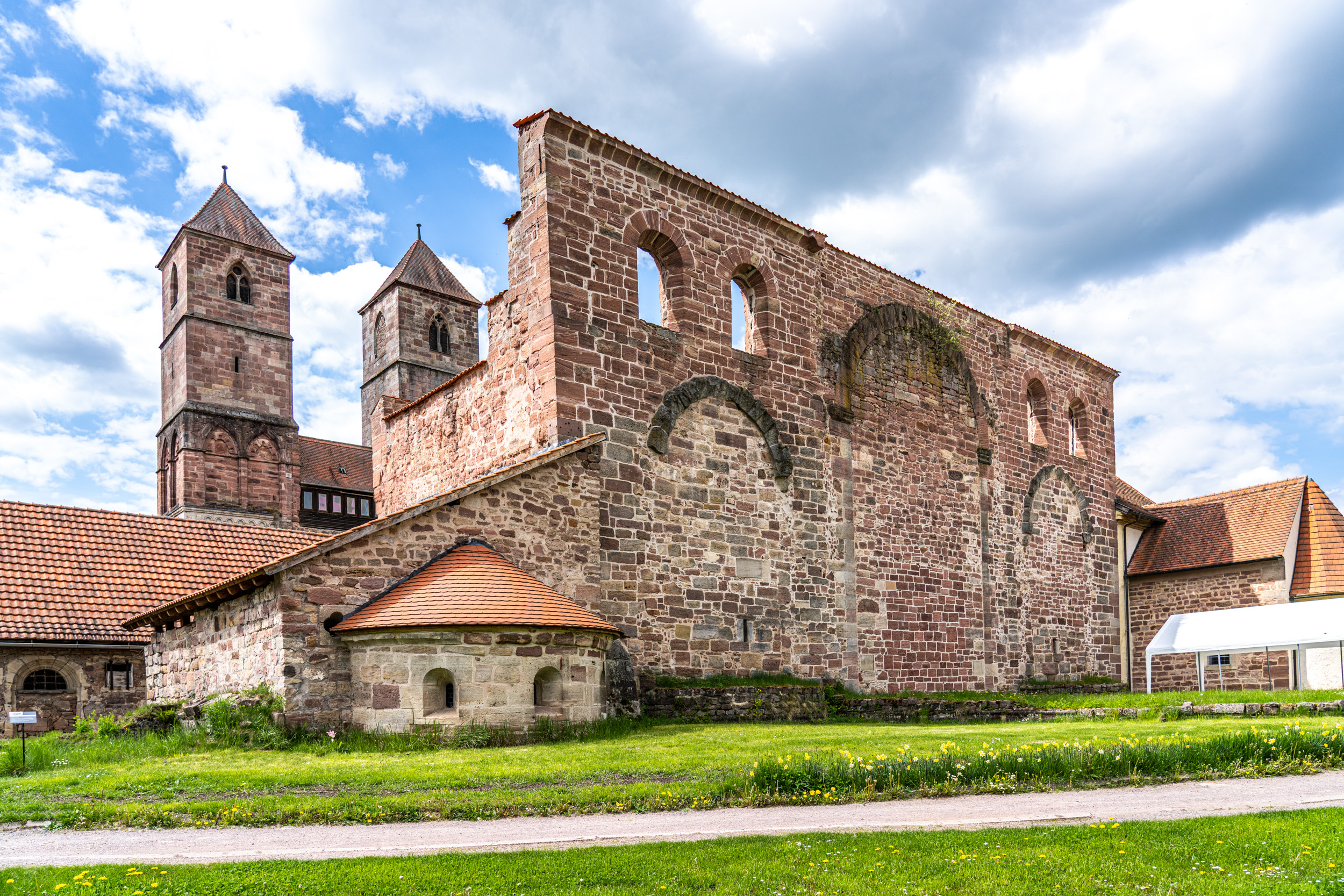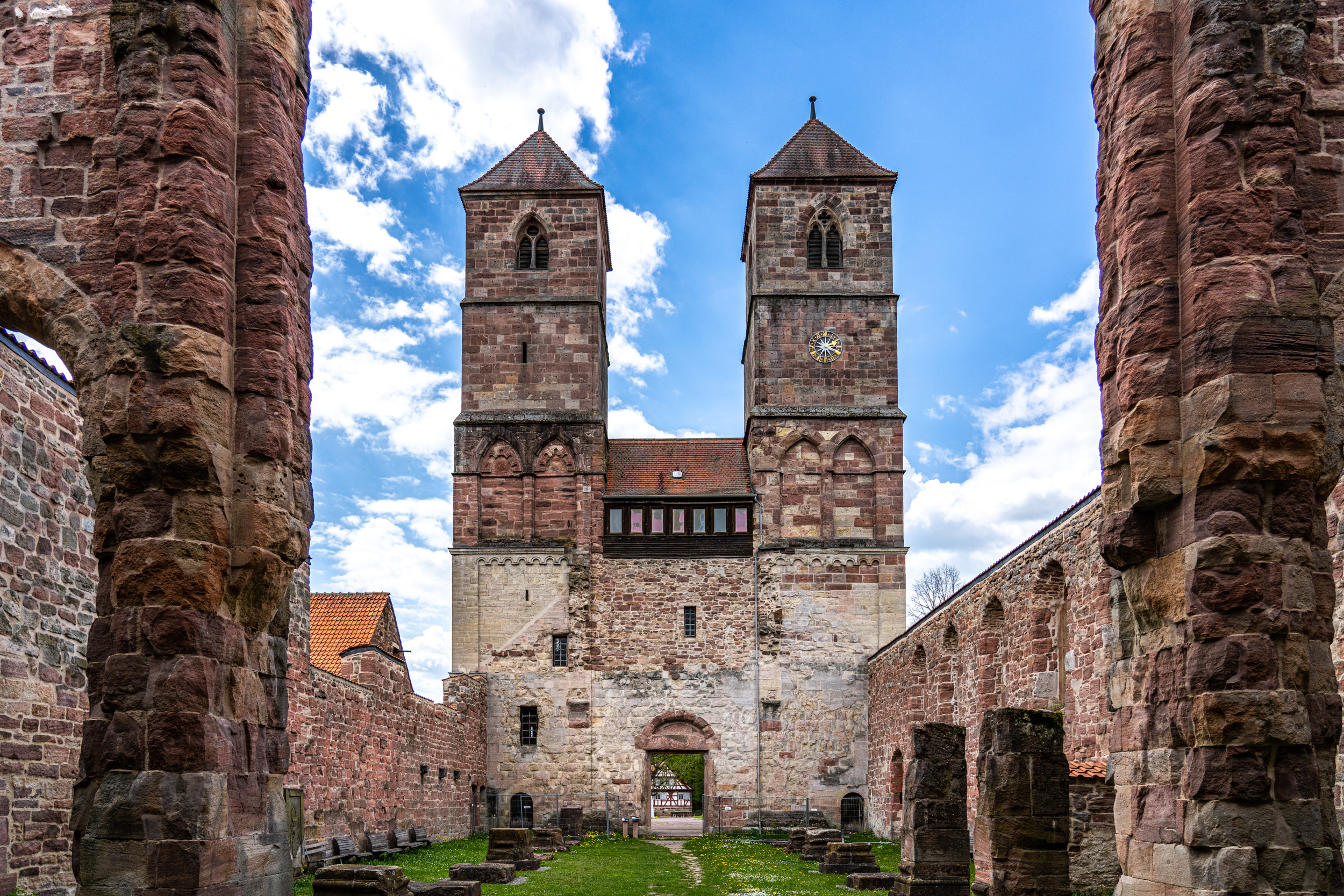 An der Mündung der Schleuse in die Werra liegt das ehemalige Prämonstratenserkloster Veßra. Es gehört zu den wenigen mittelalterlichen Klosteranlagen Thüringens, bei denen sich sowohl Klosterkirche als auch Konvents- und Wirtschaftsgebäude erhalten haben. Gestiftet wurde das Kloster im Jahr 1131 von Graf Gotebold I. von Henneberg. Anfangs beherbergte es sowohl Chorherren und Laienbrüder als auch Nonnen. Letztere siedelten jedoch im Jahr 1175 in das Kloster im nahe gelegenen Trostadt um. Im Laufe der Jahrhunderte wurde das Kloster immer wieder baulich erweitert und verändert. Bis heute haben sich aber große Teile der mittelalterlichen Anlage erhalten – darunter die Klausur- und Wirtschaftsgebäude, das Klostertor, die rund 800 Meter lange Klostermauer sowie die Henneberger Kapelle, die dem gleichnamigen Grafengeschlecht einst als Grablege diente. Im Inneren sind Reste spätmittelalterlicher Fresken zu sehen. Sie zeigen Szenen des Jüngsten Gerichts – ein für Grabkapellen oft verwendetes Thema. Heute wird die Kapelle als Dorfkirche genutzt. Die Klosterkirche St. Marien wurde als kreuzförmige, dreischiffige Pfeilerbasilika errichtet und bereits 1138, nur wenige Jahre nach der Klosterstiftung geweiht. Ihre beiden Türme sind schon von weitem sichtbar. Architekturgeschichtlich sind sie besonders interessant, da an ihnen der Übergang von der Romanik zur Gotik deutlich wird. Auch farblich lässt sich dieser Wandel erkennen. Während die unteren Stockwerke aus grauem Muschelkalk gebaut wurden, nutzte man für die oberen Geschosse Buntsandstein.