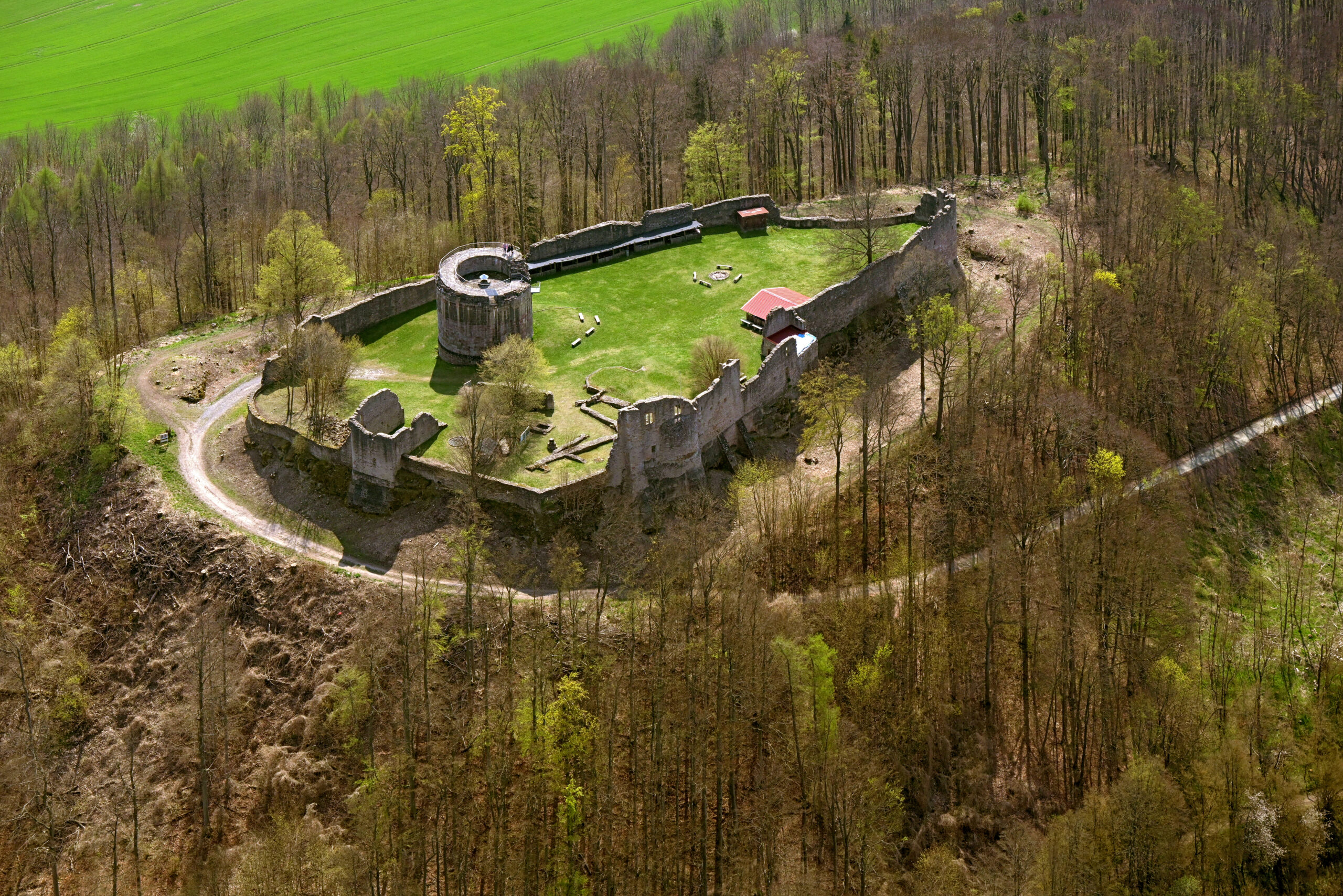 Nicht weit von der thüringisch-bayerischen Landesgrenze entfernt, erhebt sich der Henneberg mit seiner gleichnamigen Burgruine. Schon von weitem ist der freistehenden Bergkegel sichtbar. Einst stand auf seinem Plateau die namensgebende Stammburg der Grafen von Henneberg. Die Bedeutung der als Ruine erhaltenen Anlage kann man an dem mächtigen Bergfried mit seinen 14 Metern Durchmesser erahnen. Der sanierte Turm steht heute Besuchern offen und gibt den Blick frei ins Henneberger Land.