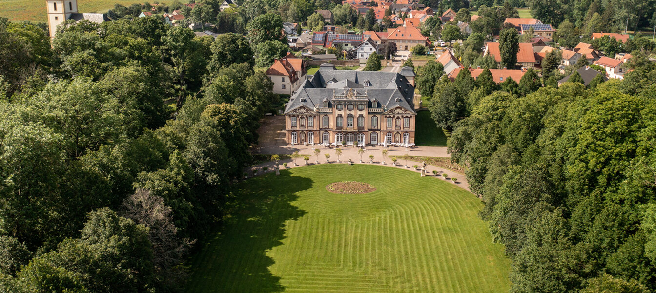 Rund zehn Kilometer südwestlich von Erfurt befindet sich Schloss Molsdorf. Es ist eine kleine Besonderheit unter den Thüringer Schlössern, was vor allem an seinem illustren Bauherrn liegt. Denn Gustav Adolf von Gotter (1692 – 1762) hatte eine aufsehenerregende Karriere hingelegt. In Gotha geboren als Sohn einer bürgerlichen Familie, trat er in den Dienst Herzog Friedrichs II. von Sachsen-Gotha-Altenburg, wurde außerordentlicher Gesandter in Wien, Hofrat und Geheimer Staatsrat. 1724 erhob ihn der Kaiser in den Adelsstand und ernannte ihn zum Freiherrn und Reichsgrafen. Zehn Jahre später krönte Graf Gotter seinen gesellschaftlichen Aufstieg mit dem Kauf von Schloss Molsdorf. Er verwandelte die einstige Wasserburg in ein barockes Lustschloss. Durch seine Kontakte zu den führenden Höfen seiner Zeit konnte er zur Umsetzung der Bauaufgabe bedeutende Künstler gewinnen, darunter den Weimarer Hofarchitekten Gottfried Heinrich Krohne und den Stuckateur Johann Baptist Pedrozzi.