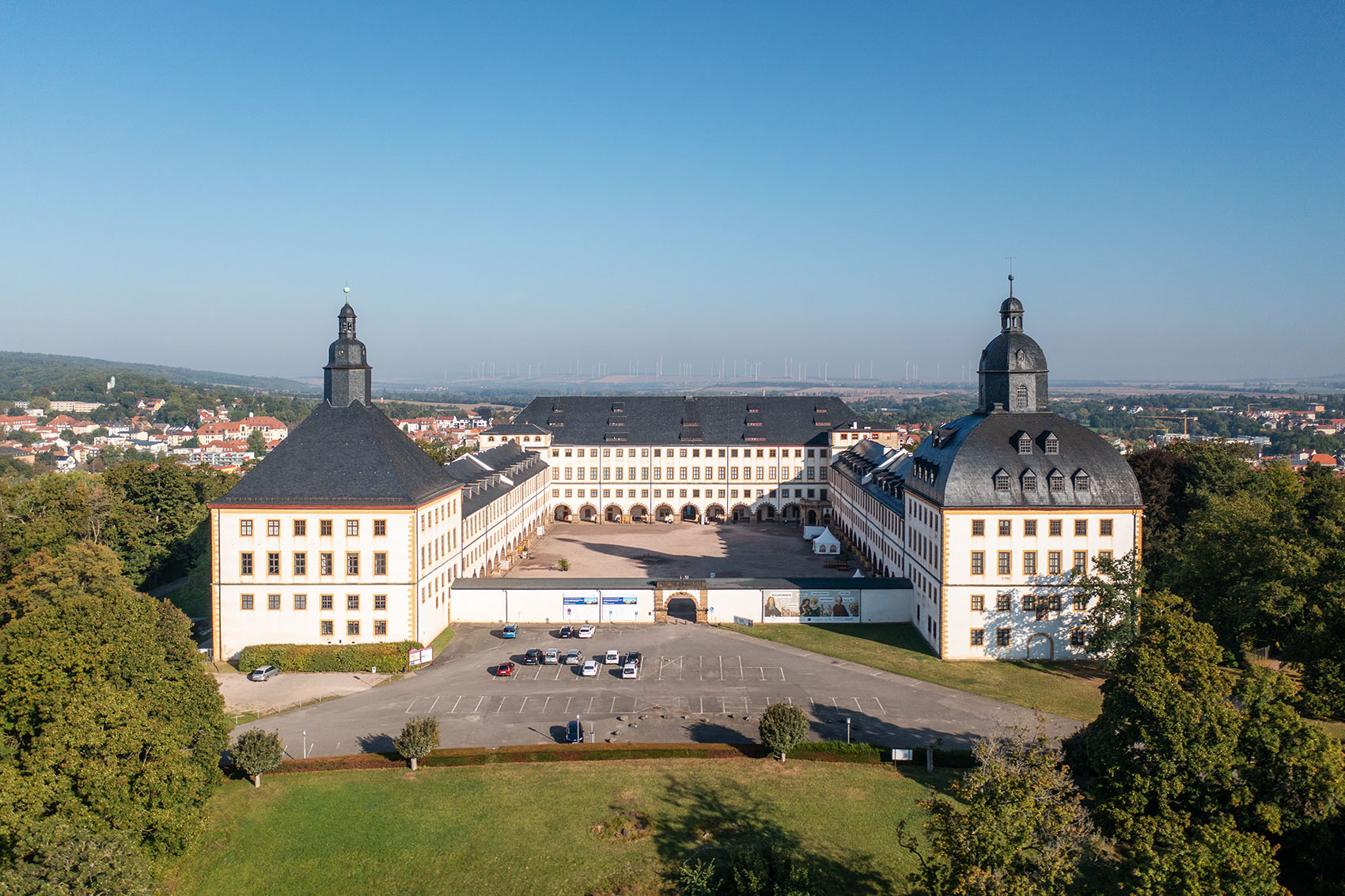 Schloss Friedenstein ist eine der kunst- und kulturhistorisch bedeutendsten Schlossanlagen Thüringens. Nach Gründung des Herzogtums Sachsen-Gotha 1640 wurde es von 1643 bis 1656 unter Herzog Ernst I. von Sachsen-Gotha, genannt der Fromme, erbaut. Die weithin sichtbare schlichte Dreiflügelanlage von Schloss Friedenstein wurde immer wieder umgebaut und neu ausgestattet. Sie beherbergt Raumkunstwerke vom Barock bis zum Historismus.