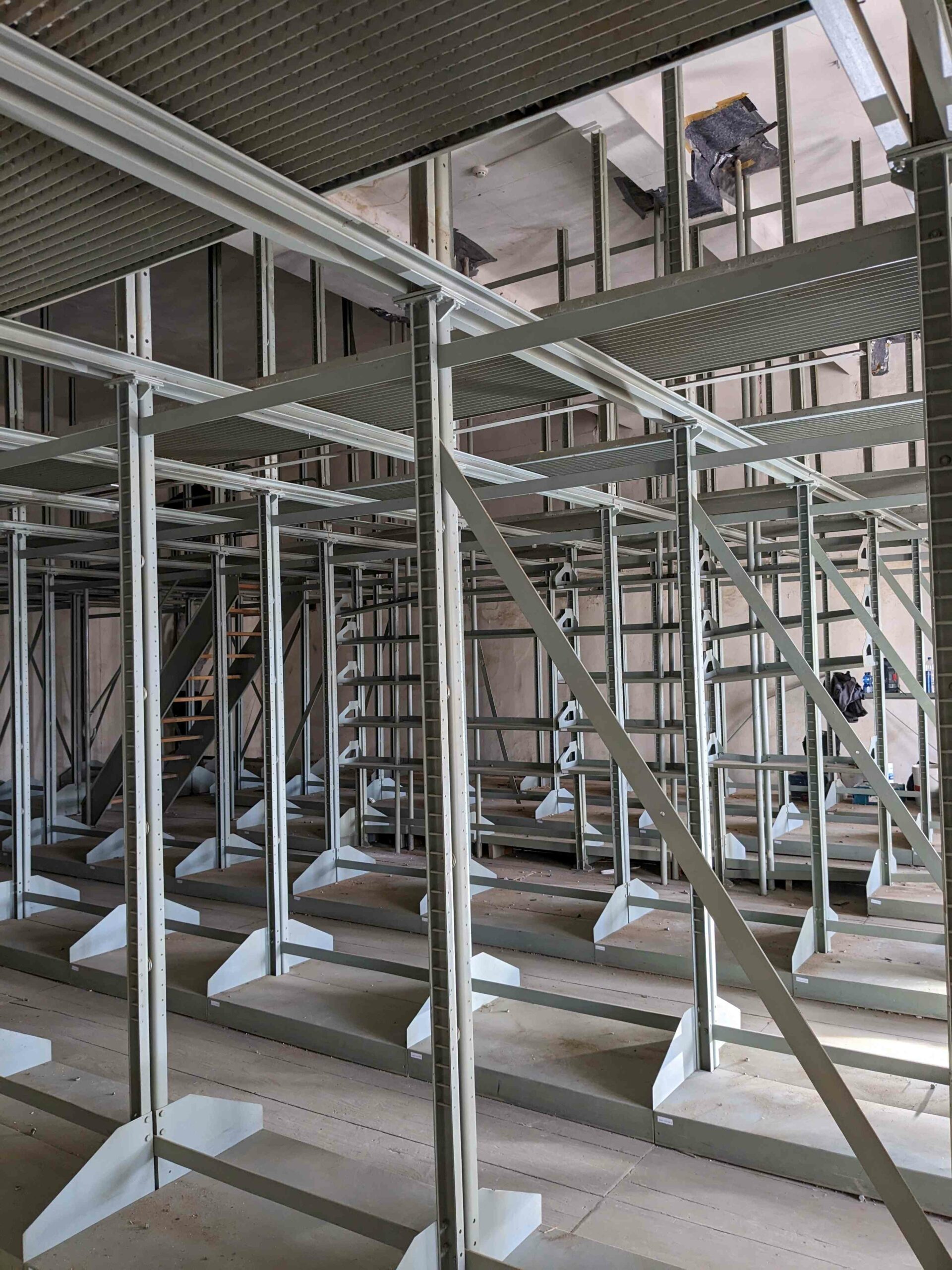 Um detaillierte statische Untersuchungen zu ermöglichen, die für die Sanierungsplanung unerlässlich sind, lagerte die Forschungsbibliothek Gotha der Universität Erfurt 2023 rund 300.000 Bücher aus dem Ostturm in ein Interimsdepot aus. Rund 35 Tonnen an Stahlregalen mussten ebenfalls ausgebaut werden. Mehr zur Entlastung des Ostturms im friedensteinblog.